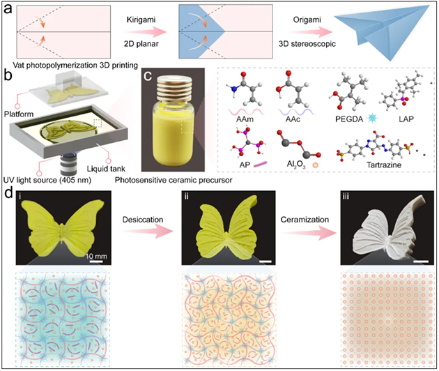 光固化3D打印水凝膠柔性前驅(qū)體輔助制造復(fù)雜陶瓷結(jié)構(gòu)的方案。