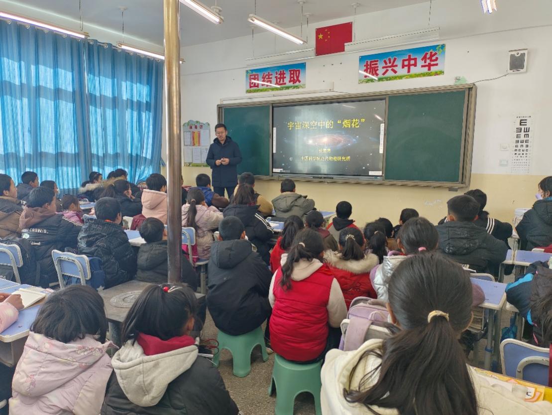 為建立健全結(jié)對(duì)開展教育幫扶工作機(jī)制,近代物理所研究員、首屆中國(guó)科技青年論壇一等獎(jiǎng)獲得者侯素青老師受聘王泉小學(xué)擔(dān)任“科技教師”,并作了題為《宇宙深空中的“煙花”》的科普?qǐng)?bào)告。
