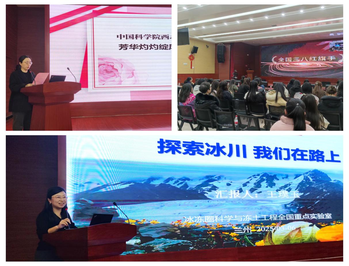 3月6日,婦委會(huì)組織女職工、女研究生集中觀看了中國(guó)科學(xué)院“搶占科技制高點(diǎn) 巾幗建功助攻堅(jiān)”先進(jìn)事跡報(bào)告會(huì),聆聽了2024年度全國(guó)三八紅旗手、全國(guó)巾幗文明崗、中央和國(guó)家機(jī)關(guān)三八紅旗手等獲獎(jiǎng)代表的感人事跡,感悟新時(shí)代女性科技工作者勇攀高峰的拼搏精神。隨后,婦委會(huì)主任孟憲紅研究員主持召開了西北研究院專題報(bào)告會(huì),紀(jì)委書記袁小華代表領(lǐng)導(dǎo)班子向全體女職工致以節(jié)日問候和美好祝愿,感謝大家為西北研究院科技創(chuàng)新事業(yè)作出的重要貢獻(xiàn),并鼓勵(lì)全體女職工以更加昂揚(yáng)的精神面貌,在各自崗位上繼續(xù)拼搏奮斗。青年女科學(xué)家王璞玉研究員以《探索冰川 我們?cè)诼飞稀窞轭},分享了自己和團(tuán)隊(duì)扎根冰川的科研往事,為大家?guī)砹艘粓?chǎng)科學(xué)與情懷交織的精神盛宴。