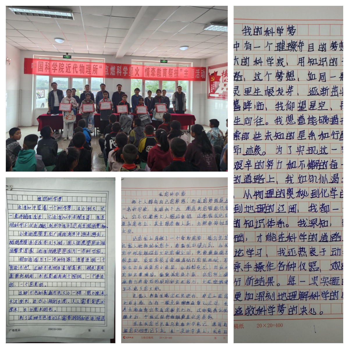 報告結(jié)束后,近代物理所黨辦相關(guān)同志為“我的科學(xué)夢”主題征文比賽中獲獎同學(xué)頒發(fā)了證書和獎品。陳家集鎮(zhèn)黨委書記楊文華代表鎮(zhèn)黨委政府,對近代物理所長期以來在“智志雙扶”方面給予的大力支持表示衷心感謝,并向研究所贈送了題為“教育幫扶育桃李,情暖校園映初心”的錦旗。