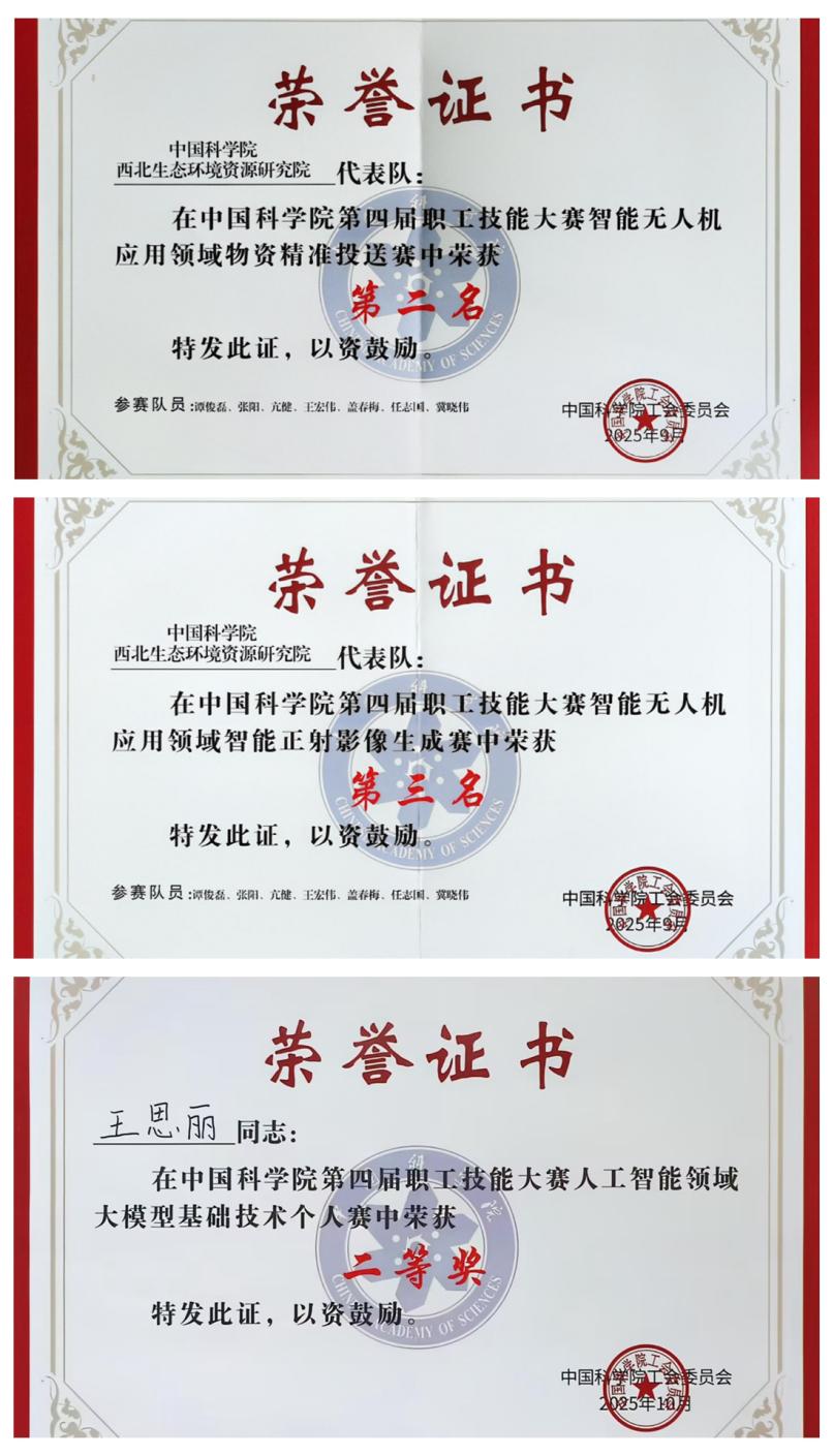 在西北研究院黨委的高度重視與工會(huì)的精心組織下,科研團(tuán)隊(duì)積極響應(yīng)、踴躍參賽。智能無人機(jī)應(yīng)用領(lǐng)域,由黑河遙感試驗(yàn)研究站譚俊磊、亢健、張陽等6名選手組成的團(tuán)隊(duì)通過精準(zhǔn)路徑規(guī)劃與動(dòng)態(tài)負(fù)載調(diào)控,實(shí)現(xiàn)復(fù)雜環(huán)境下物資的穩(wěn)定投送,依托自研靶標(biāo)識(shí)別程序,顯著提升正射影像數(shù)據(jù)處理效率,榮獲了“物資精準(zhǔn)投送”賽道全院第二名,“智能正射影像生成”賽道全院第三名和團(tuán)隊(duì)三等獎(jiǎng)。在網(wǎng)信智能應(yīng)用服務(wù)領(lǐng)域,國(guó)家冰川凍土沙漠科學(xué)數(shù)據(jù)中心團(tuán)隊(duì)將專業(yè)領(lǐng)域數(shù)據(jù)和服務(wù)能力與AI的強(qiáng)大分析推理能力結(jié)合,實(shí)現(xiàn)自然語言交互、數(shù)據(jù)智能分析和可視化展示,提升了數(shù)據(jù)中心的智能化服務(wù)水平,榮獲了“MCP云服務(wù)”賽道三等獎(jiǎng)。在人工智能領(lǐng)域,文獻(xiàn)情報(bào)中心王思麗基于中國(guó)科學(xué)院 “磐石?科學(xué)基礎(chǔ)大模型”,圍繞人工智能基礎(chǔ)理論、實(shí)操能力與知識(shí)融合推理能力展開角逐,榮獲“大模型基礎(chǔ)技術(shù)個(gè)人賽”二等獎(jiǎng)。