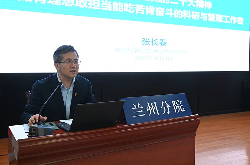 蘭州化學(xué)物理研究所紀委書記張長春講《深入學(xué)習(xí)領(lǐng)會黨的二十大精神 做有理想敢擔(dān)當(dāng)能吃苦肯奮斗的科研與管理工作者》:立足崗位實際,將二十大精神和科研管理工作融會貫通,鼓勵學(xué)員們善作善成、奮勇爭先,在科研和管理工作中有所成就。