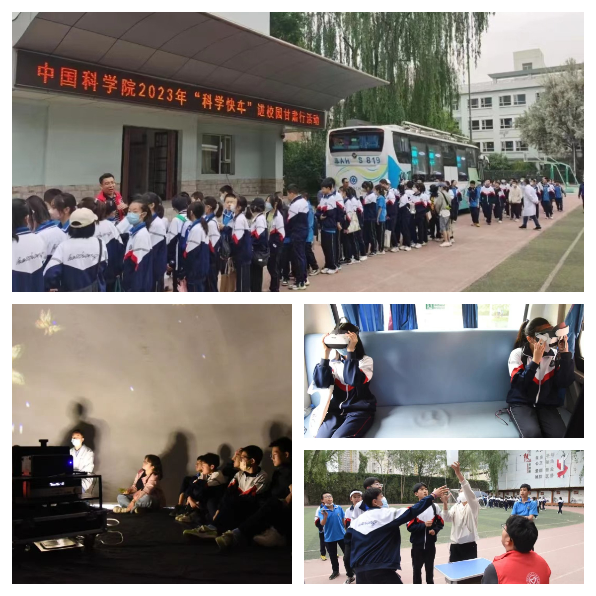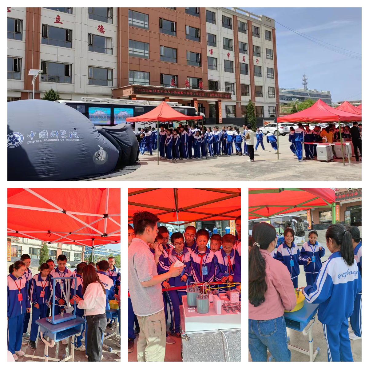 在為期七天的活動(dòng)中,“科學(xué)快車”以球幕影院、車廂內(nèi)互動(dòng)展廳、戶外可移動(dòng)展區(qū)等多種形式向同學(xué)們展示了中科院近年來重大創(chuàng)新科技成果,通過豐富多彩的展品、利用沉浸式環(huán)境和交互式手段,讓青少年在參與和互動(dòng)中體驗(yàn)到神奇的科技世界:在球幕影院,360度球幕科普微電影讓同學(xué)們直觀感性體驗(yàn)了科學(xué)探索太空、科學(xué)和諧自然、科學(xué)服務(wù)人類,領(lǐng)略了神奇的科技魅力,激發(fā)了偉大的科技?jí)粝?,球幕影院不時(shí)傳出孩子們的驚嘆與歡笑聲;在車廂內(nèi)互動(dòng)展廳,深空、深海、深地和深藍(lán)四個(gè)領(lǐng)域的科研成果深深吸引了同學(xué)們的眼球,他們有的小聲地與身邊的伙伴交流著,有的聚精會(huì)神地閱讀展板上的介紹文字,特別是當(dāng)同學(xué)們帶上VR眼鏡時(shí),可身臨其境的體驗(yàn)“深海探險(xiǎn)”,孩子們歡呼雀躍、意猶未盡;在戶外可移動(dòng)展區(qū),通過科普志愿者的精彩講解,同學(xué)們近距離觀察了中國空間站互動(dòng)模型、天地一體化量子信息通信網(wǎng)絡(luò)樣機(jī)模型、智能制造機(jī)械臂模型、大型低溫制冷裝備模型、人工合成淀粉模型和人造太陽裝置模型等近年來中科院重大創(chuàng)新成果的模型展品,并且親自體驗(yàn)了“會(huì)跳高的珠子”、“磁阻尼演示儀”和“溫柔的電擊”等互動(dòng)性強(qiáng)的科普展品,加深了對(duì)相關(guān)科學(xué)原理的認(rèn)知。