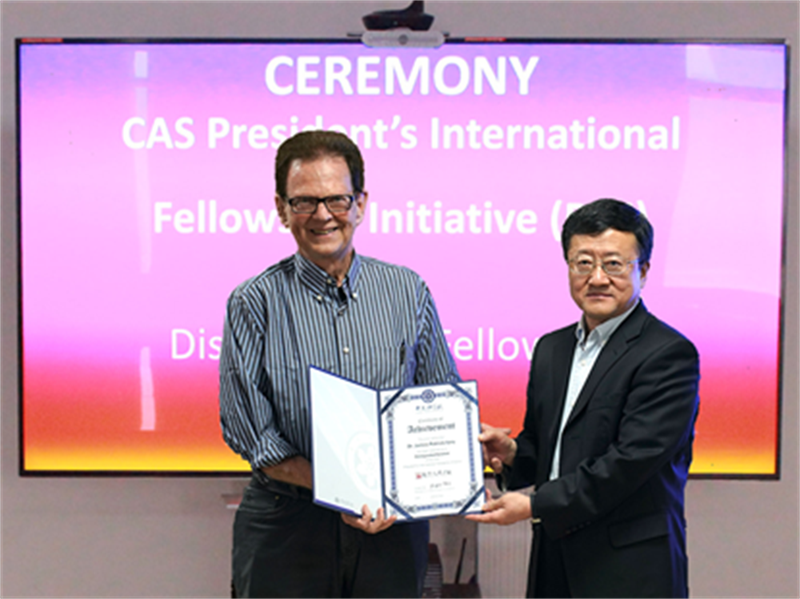 圖1:趙紅衛(wèi)為James P. Vary教授頒發(fā)中國科學(xué)院國際人才計(jì)劃杰出科學(xué)家獎(jiǎng)狀