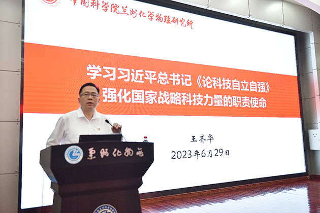 6月29日下午,中國科學(xué)院蘭州化學(xué)物理研究所舉行慶祝建黨102周年專題黨課報(bào)告會暨革命傳統(tǒng)教育活動。全所黨員干部職工和研究生黨員、離退休黨員代表和民主黨派代表參加會議。黨委委員、副所長張俊彥主持會議。