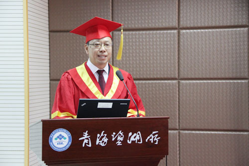 周園宣讀了青海鹽湖所學(xué)位評定委員會(huì)擬授予學(xué)生名單。學(xué)位評定委員會(huì)主席吳志堅(jiān)依次為擬授予學(xué)生扶正流蘇,向?qū)W位獲得者頒發(fā)畢業(yè)紀(jì)念品。