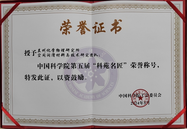 蘭州化物所空間潤(rùn)滑材料與技術(shù)研究團(tuán)隊(duì)獲第五屆中國(guó)科學(xué)院科苑名匠表彰