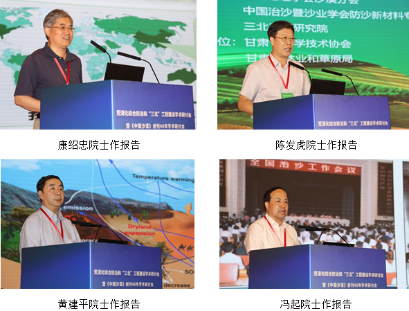 研討會(huì)以“荒漠化綜合防治和‘三北’工程建設(shè)”為主題,旨在深入學(xué)習(xí)貫徹落實(shí)習(xí)近平總書(shū)記關(guān)于加強(qiáng)荒漠化綜合防治和推進(jìn)生態(tài)工程建設(shè)重要講話精神,推動(dòng)山水林田湖草沙一體化保護(hù)和系統(tǒng)治理,總結(jié)和交流相關(guān)研究成果,促進(jìn)人與自然和諧共生。大會(huì)邀請(qǐng)了丁一匯、姚檀棟、侯立安、鄭曉靜、康紹忠、陳發(fā)虎、黃建平、馮起、方小敏、朱教君等10位院士和王濤、李新榮、楊小平、董治寶、陳亞寧、鹿化煜、屈建軍、楊文斌等8位專家作主題報(bào)告,并組織了14個(gè)分論壇的專題報(bào)告。南志標(biāo)、賴遠(yuǎn)明、楊志峰院士參會(huì)??凳啦?、曹廣超、盧琦、李廣、勾曉華、楊興國(guó)分別主持大會(huì)主題報(bào)告。與會(huì)專家學(xué)者圍繞荒漠化綜合防治和“三北”工程建設(shè)的新理念、新技術(shù),深入探討了荒漠化地區(qū)氣候變化與生態(tài)系統(tǒng)響應(yīng)、荒漠生態(tài)修復(fù)與治理、全球氣候變化對(duì)西北暖濕化趨勢(shì)的影響等前沿問(wèn)題。