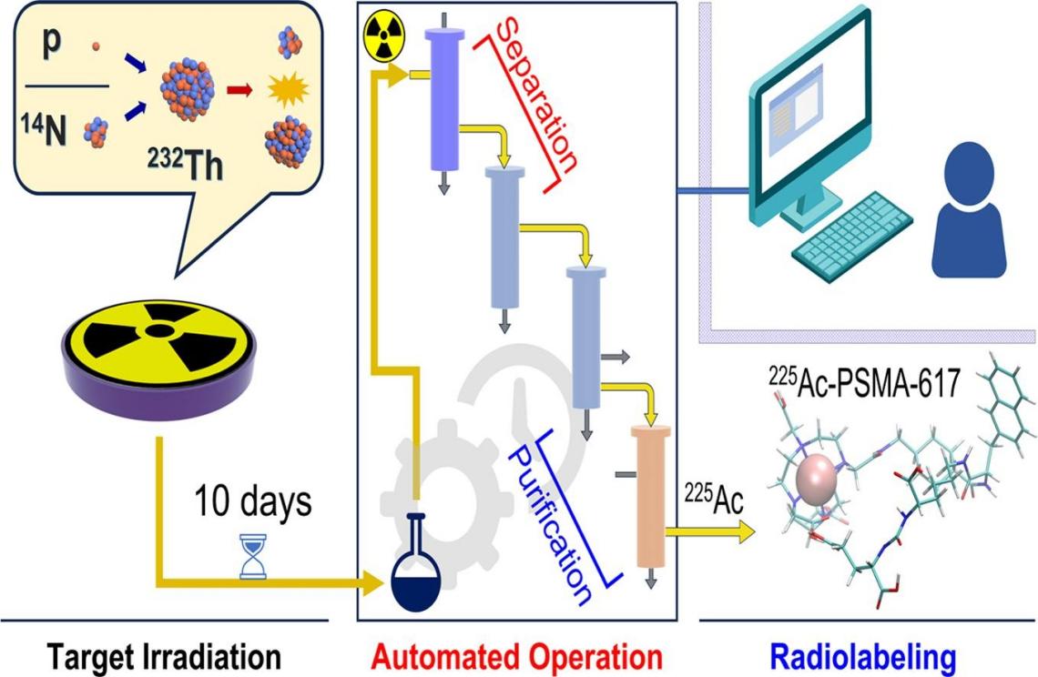 鐳-223(半衰期為11.4天)和錒-225(半衰期為10天)作為兩種極具潛力的阿爾法發(fā)射同位素,由于其獨特的物理化學性質(zhì),在小體積腫瘤和多位點轉(zhuǎn)移性癌癥的治療中展現(xiàn)出廣泛的應用前景。然而,傳統(tǒng)的鐳-223和錒-225生產(chǎn)方法復雜且效率不高,難以滿足日益增長的需求,迫切需要開發(fā)出一種高效且自動化的制備系統(tǒng)。