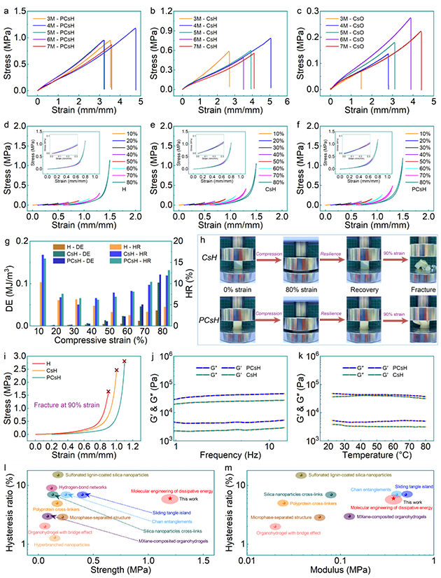 圖4. 耗散能分子工程構筑的超彈性水凝膠的實驗驗證