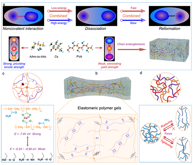 圖2. 耗散能分子工程策略構建的超彈性水凝膠