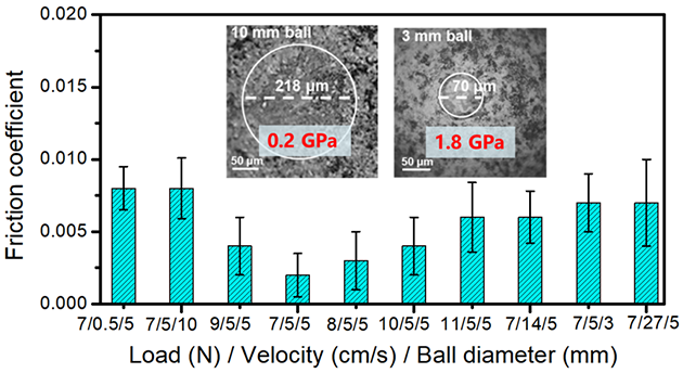 研究人員提出了“氫調(diào)制界面摩擦”策略,通過(guò)非晶與晶體異質(zhì)配副設(shè)計(jì),構(gòu)建含氫碳薄膜/二維復(fù)合涂層體系,實(shí)現(xiàn)了寬承載、寬速度、惰性氣氛等模擬工況下宏觀尺度固體超潤(rùn)滑。相關(guān)成果發(fā)表在Advanced Materials?。?023,2303580)和Advanced Science(2024,2309701)上。蘭州化物所楊興助理研究員為論文第一作者,王永富副研究員和張俊彥研究員為共同通訊作者。