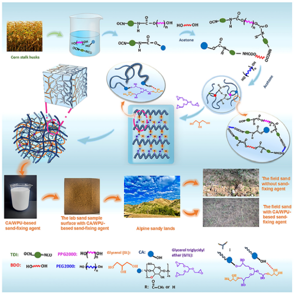 醋酸纖維素/水性聚氨酯/甘油三酯醚/甘油系列防凍固沙劑的合成機理