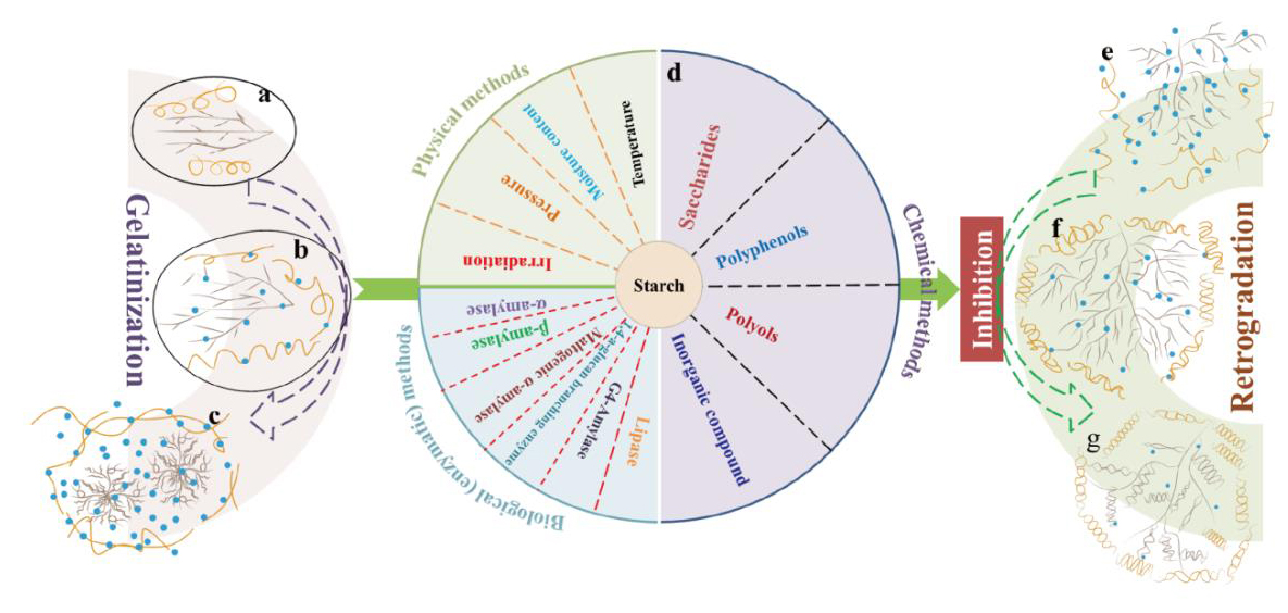 相關(guān)研究工作以“Inhibition of starch retrogradation: Advances in physical,chemical,and biological methods”為題發(fā)表在International Journal of Biological Macromolecules(2025,https://doi.org/10.1016/j.ijbiomac.2025.141390)上。鄭曉淵助理研究員為該論文第一作者,曾凡逵研究員為通訊作者。