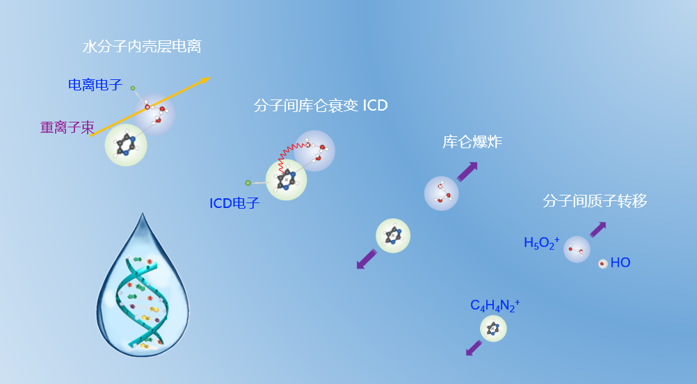 圖2:重離子輻照誘發(fā)分子間級(jí)連衰變示意圖 (圖源/近代物理所)