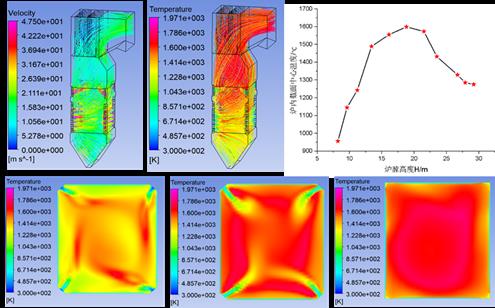 近期,團(tuán)隊在華能蘭州西固熱電有限公司和西安熱工研究院的大力支持下,首先完成了165MW機(jī)組的數(shù)值模擬,結(jié)果表明,四角切圓型鍋爐爐內(nèi)燃燒煙氣溫度分布曲線呈現(xiàn)正態(tài)-拋物線狀態(tài),中間燃燒區(qū)域溫度高,爐底及爐膛出口溫度偏低,最高燃燒溫度始終分布在主燃燒與 SOFA之間,因此重點(diǎn)噴涂區(qū)域為主燃燒區(qū)域和 SOFA 區(qū)域。