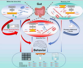 雌雄小鼠應(yīng)激腦-腸軸調(diào)控差異示意圖