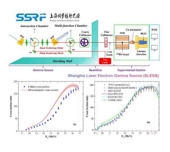 圖2 :SSRF SLEGS線站光核反應(yīng)實驗布局、103Rh(γ,n)反應(yīng)實驗截面值與評價庫的比較