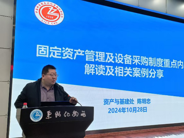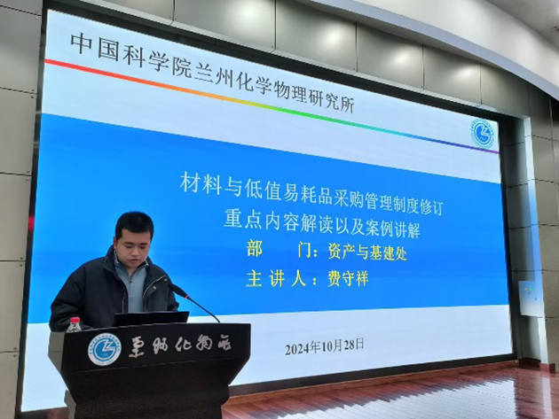資產(chǎn)與基建處處長陳建介紹了新修訂的資產(chǎn)采購與管理相關(guān)制度,陳明忠作了題為“固定資產(chǎn)管理及設(shè)備采購制度重點(diǎn)內(nèi)容解讀及相關(guān)案例分享”的報(bào)告,分析了研究所資產(chǎn)管理形勢,結(jié)合案例解讀了新修訂的固定資產(chǎn)采購制度。費(fèi)守祥作了題為“料與低值易耗品采購管理制度修訂重點(diǎn)內(nèi)容解讀以及案例講解”的報(bào)告,介紹了材料與低值易耗品采購、稀貴金屬和貴重試劑、易制毒化學(xué)品和易制爆化學(xué)品管理,分享了相關(guān)案例。