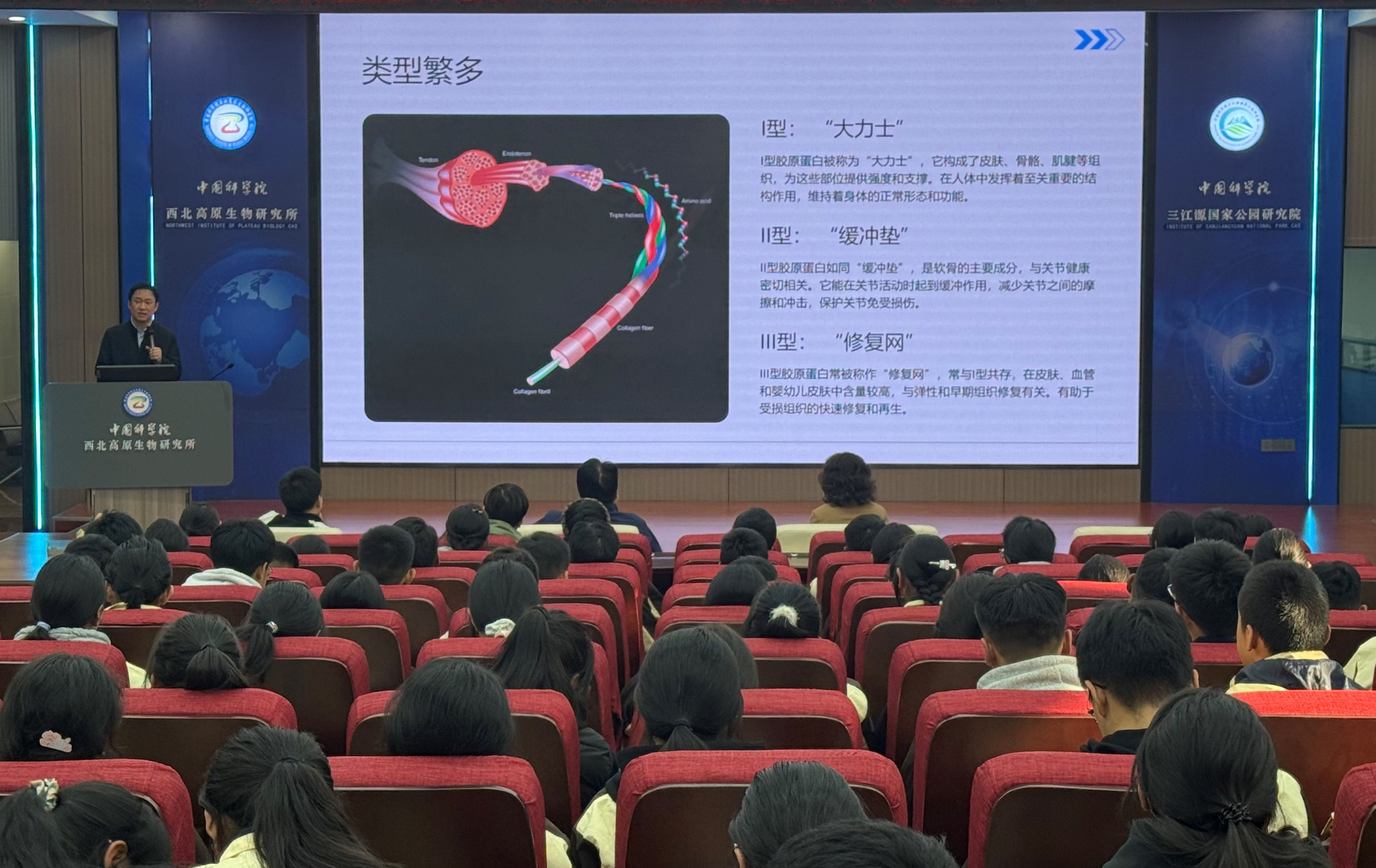 上午,在西北高原所學(xué)術(shù)報(bào)告廳內(nèi),青海省青藏高原生物學(xué)科研科普基地主任陳曉澄以科普講座“青藏高原生物標(biāo)本館里的珍貴記憶”拉開了活動(dòng)序幕。西寧植物園帶來的科學(xué)實(shí)驗(yàn)表演“從捕蠅草的生存智慧看自然法則”,以生動(dòng)的“植物獵手”故事,讓現(xiàn)場觀眾對自然法則的認(rèn)知從微觀細(xì)節(jié)延伸到宏觀生態(tài);王璐帶來的"華?;ā獜陌l(fā)現(xiàn)到守護(hù)的生態(tài)故事"科普演講,則讓科學(xué)節(jié)的“自然敘事”多了一份厚重的守護(hù)情懷。西北高原所副研究員江磊帶來的“膠原蛋白在生命過程中的作用”科普講座,更是將“膠原蛋白”這個(gè)在護(hù)膚品、保健品宣傳中的高頻詞匯,變得清晰而立體。