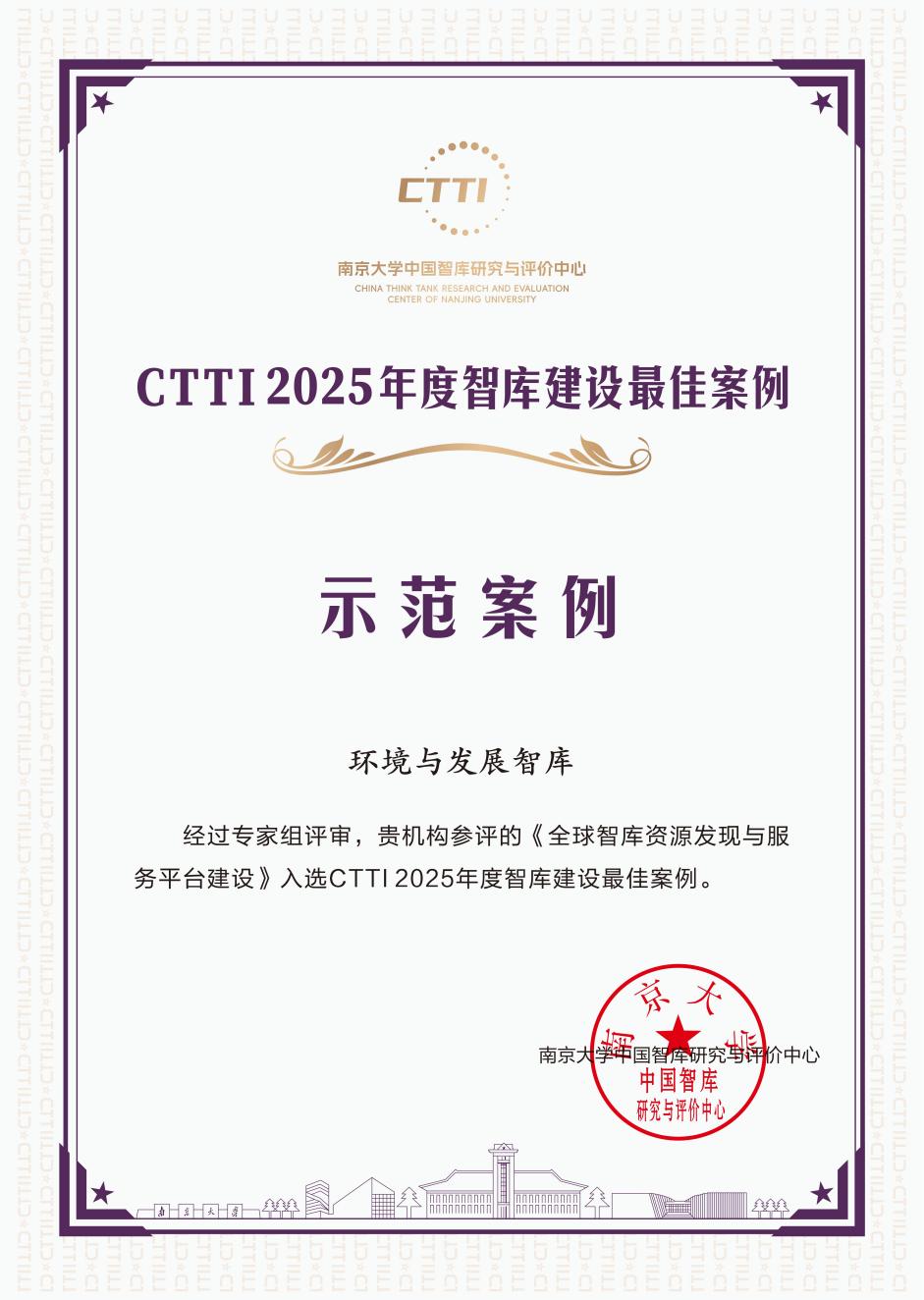 下一步,環(huán)境與發(fā)展智庫將以此次入選為契機,持續(xù)依托CTTI平臺資源優(yōu)勢,深化全球智庫資源挖掘與服務升級,聚焦生態(tài)環(huán)境保護、資源合理利用、區(qū)域協(xié)調發(fā)展等核心領域,在高質量成果產出、高水平決策咨詢、高效能資源服務等方面持續(xù)發(fā)力,為推動我國新型智庫建設與生態(tài)環(huán)境治理現代化貢獻更大力量。