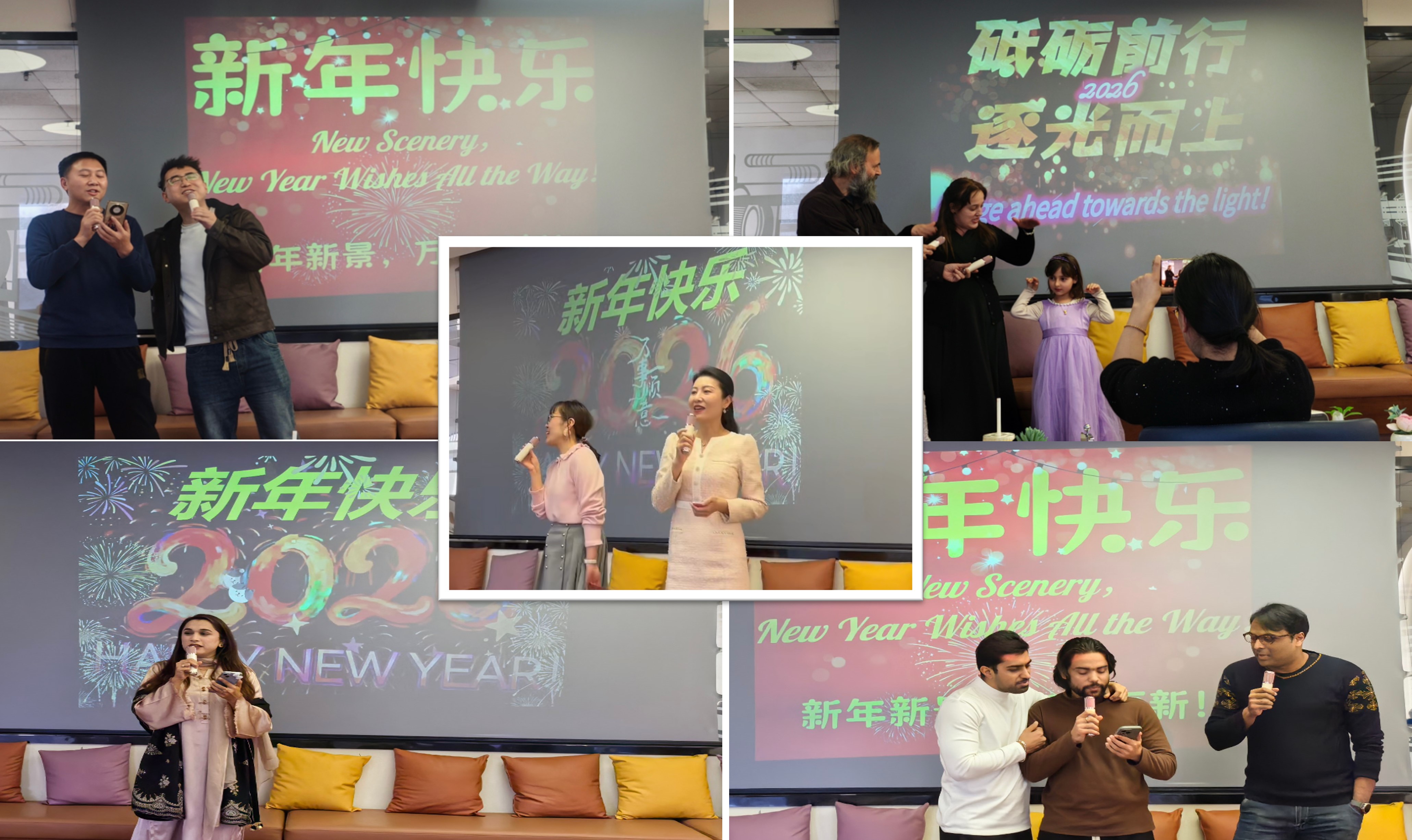 隨后的才藝表演環(huán)節(jié)精彩連連,各具特色,展現出豐富多彩的異域風情?;顒右院铣浀涓枨杜笥选烽_場,歡快的旋律瞬間點燃了節(jié)日氛圍,引起大家情感的共鳴,傳遞了跨越文化的友誼;三名留學生博士用中文演唱《新年好》時, 傳遞的不僅是節(jié)日祝福,更是跨越時空的真誠融入;一首豪邁又不乏細膩、溫暖又治愈的《蘋果香》,悠長的旋律久久縈繞在大家的心間?,F場氣氛熱烈,嘉賓踴躍登場,有外籍員工全家攜手登臺演唱《小豬睡覺》為活動注入了暖意與童真;有外籍人員的家屬們紛紛上臺為大家?guī)碜约好褡搴图亦l(xiāng)的歌曲,歌聲宛如一道道橋梁,將遙遠的故鄉(xiāng)與此刻的舞臺連接,生動詮釋了“此心安處是吾鄉(xiāng)”,展現了研究所大家庭包容、有愛的濃厚氛圍。