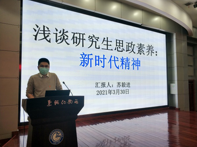 蘇毅進研究員作了題為“淺談研究生思政素養(yǎng):新時代精神”的報告,介紹了科學(xué)家精神,分享了先進典型案例,號召全體研究生同學(xué)用習(xí)近平新時代中國特色社會主義思想武裝頭腦,增強“四個意識”,堅定“四個自信”,堅決做到“兩個維護”,為祖國建設(shè)發(fā)展貢獻自己最大的力量。
