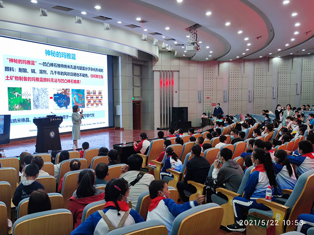 王馬山村中小學師生22日早6時半就從村里出發(fā),于蒙蒙細雨中驅(qū)車160公里趕赴蘭州,至上午10時到達蘭州化物所,研究所安排了包括科普報告、實驗室參觀、科學小實驗、化學互動游戲等一系列活動。