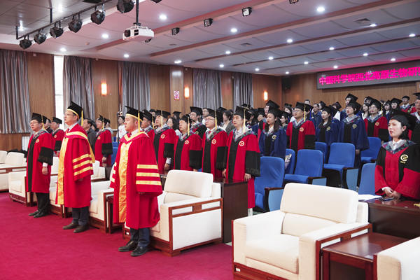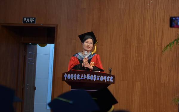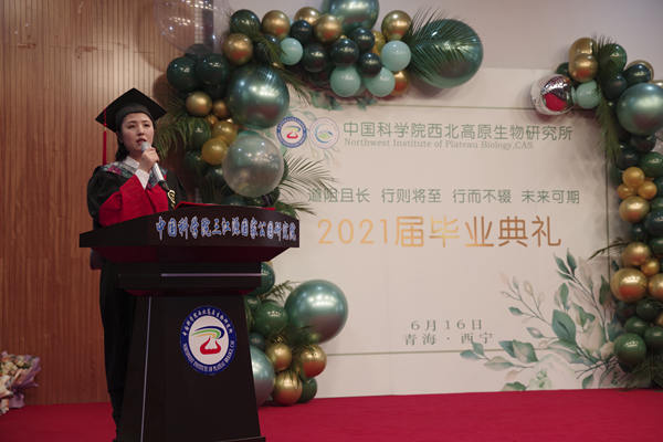 畢業(yè)典禮在莊嚴(yán)的國(guó)歌聲中拉開(kāi)序幕。優(yōu)秀畢業(yè)生代表閆榮格博士首先發(fā)言。她代表全體畢業(yè)生懷著感恩的心和美好的希望,向培養(yǎng)他們的研究所和辛勤付出的導(dǎo)師們送上了最真摯的謝意和最美好的祝福。她說(shuō)明年將是西高所建所60周年,在過(guò)去的數(shù)十年間,一批又一批科學(xué)家義無(wú)反顧地來(lái)到青海,扎根青海,克服困難,奉獻(xiàn)高原,為科學(xué)前沿、國(guó)家需求和地方發(fā)展做出了重大貢獻(xiàn),培養(yǎng)了一大批杰出的人才,很榮幸作為西高所的一份子,很榮幸,這里是大家的精神家園。在此出發(fā),胸懷夢(mèng)想不懈奮斗!