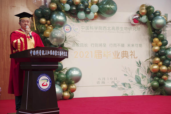 六月,綠意盎然,草長(zhǎng)鶯飛;六月,畢業(yè)別離,青春留影;六月,新的征程,期待滿(mǎn)懷。6月16日下午,中國(guó)科學(xué)院西北高原生物研究所2021屆研究生畢業(yè)典禮在學(xué)術(shù)報(bào)告廳舉行。所長(zhǎng)陳世龍、黨委書(shū)記張景光,副所長(zhǎng)楊其恩,管理部門(mén)負(fù)責(zé)人、優(yōu)秀導(dǎo)師代表、2021屆全體畢業(yè)生及畢業(yè)生家長(zhǎng)代表一同參加了典禮。畢業(yè)典禮由張景光主持。