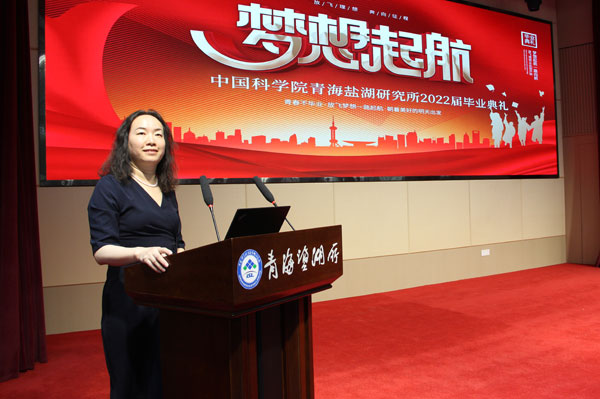 孫進(jìn)賀研究員作為導(dǎo)師代表發(fā)言,他向畢業(yè)生及導(dǎo)師們表示祝賀,祝愿大家在今后的道路上披荊斬棘、腳踏實地、砥礪前行。白露同學(xué)代表畢業(yè)生發(fā)言,表達(dá)了對國科大、對青海鹽湖所、對導(dǎo)師的感激與不舍,表示將牢記“鹽湖精神”,在今后的工作中努力做到艱苦奮斗、無私奉獻(xiàn)、團(tuán)結(jié)拼搏、開拓創(chuàng)新,把“鹽湖精神發(fā)”揚(yáng)光大,并祝愿青海鹽湖所越辦越好,再創(chuàng)佳績。