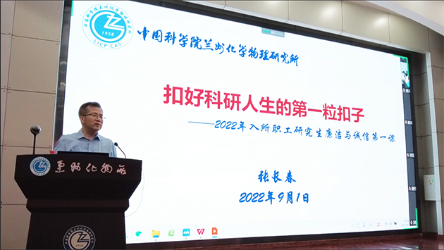 9月1日,中國(guó)科學(xué)院蘭州化學(xué)物理研究所為2022年新入所人員講授“廉潔與誠(chéng)信第一課”,2022年新入所職工和研究生160余人參加了會(huì)議。