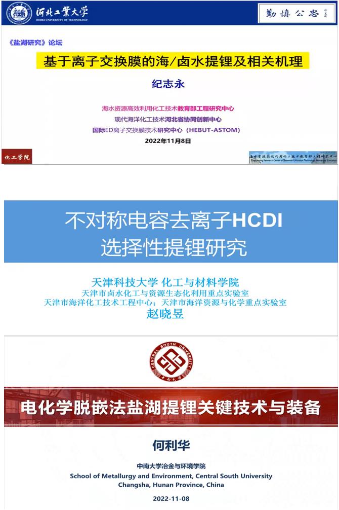 論壇圍繞“鹽湖鹵水提鋰”這一中心議題,進行了學術報告及廣泛交流。論壇包括3個邀請報告,邀請河北工業(yè)大學紀志永教授、天津科技大學趙曉昱副研究員、中南大學何利華副教授分別圍繞離子交換膜提鋰、不對稱電容去離子技術選擇性提鋰、電化學脫嵌法提鋰等主題作了深度報告與交流。