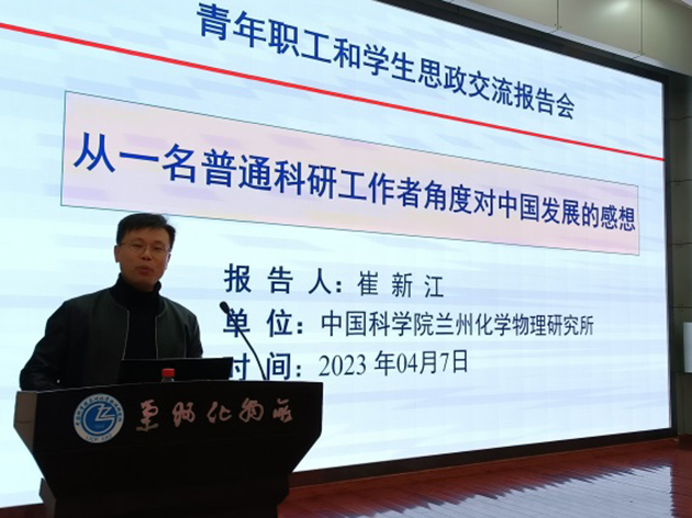 為深入貫徹落實習(xí)近平新時代中國特色社會主義思想和黨的二十大精神,進(jìn)一步加強(qiáng)青年職工和學(xué)生思想政治教育,4月7日,中國科學(xué)院蘭州化學(xué)物理研究所舉辦了青年職工和學(xué)生思想政治教育輔導(dǎo)報告會,邀請研究所兩位青年科研骨干作報告,青年職工和學(xué)生360余人參加報告會。