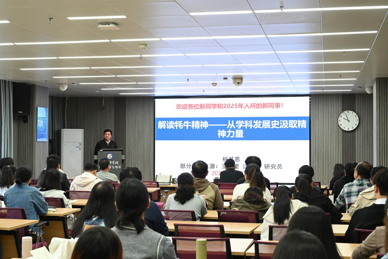 8日上午,入學典禮在莊嚴的國歌聲中拉開序幕。陳世龍首先作了“弘揚科學精神,加強學風建設”專題報告,強調了在科研的道路上,傳承好科學精神,遵循唯真求實、嚴謹本分、非所屬者不取、非原創(chuàng)者謙卑的原則和系好學術人生的第一??圩拥闹匾?。隨后,楊其恩作了“解讀牦牛精神——從學科發(fā)展史汲取精神力量”專題報告,向大家講述了“牦牛精神”蘊含的深刻內涵,他希望大家能夠從研究所的文化中汲取精神力量,時刻保持對科研工作的熱情和敬畏之心、求知欲和好奇心。最后,入學典禮特邀退休職工李英年研究員作了“熱愛工作 勤勞耕耘——談科學家精神”專題報告,他通過分享40多年的工作經(jīng)歷與感悟,告訴大家精神的培養(yǎng)需要關注細節(jié)、廣學博覽、在交流與思考中培養(yǎng)創(chuàng)新意識,以卓然眼界、超群膽識、堅定信念、敢天下之先。