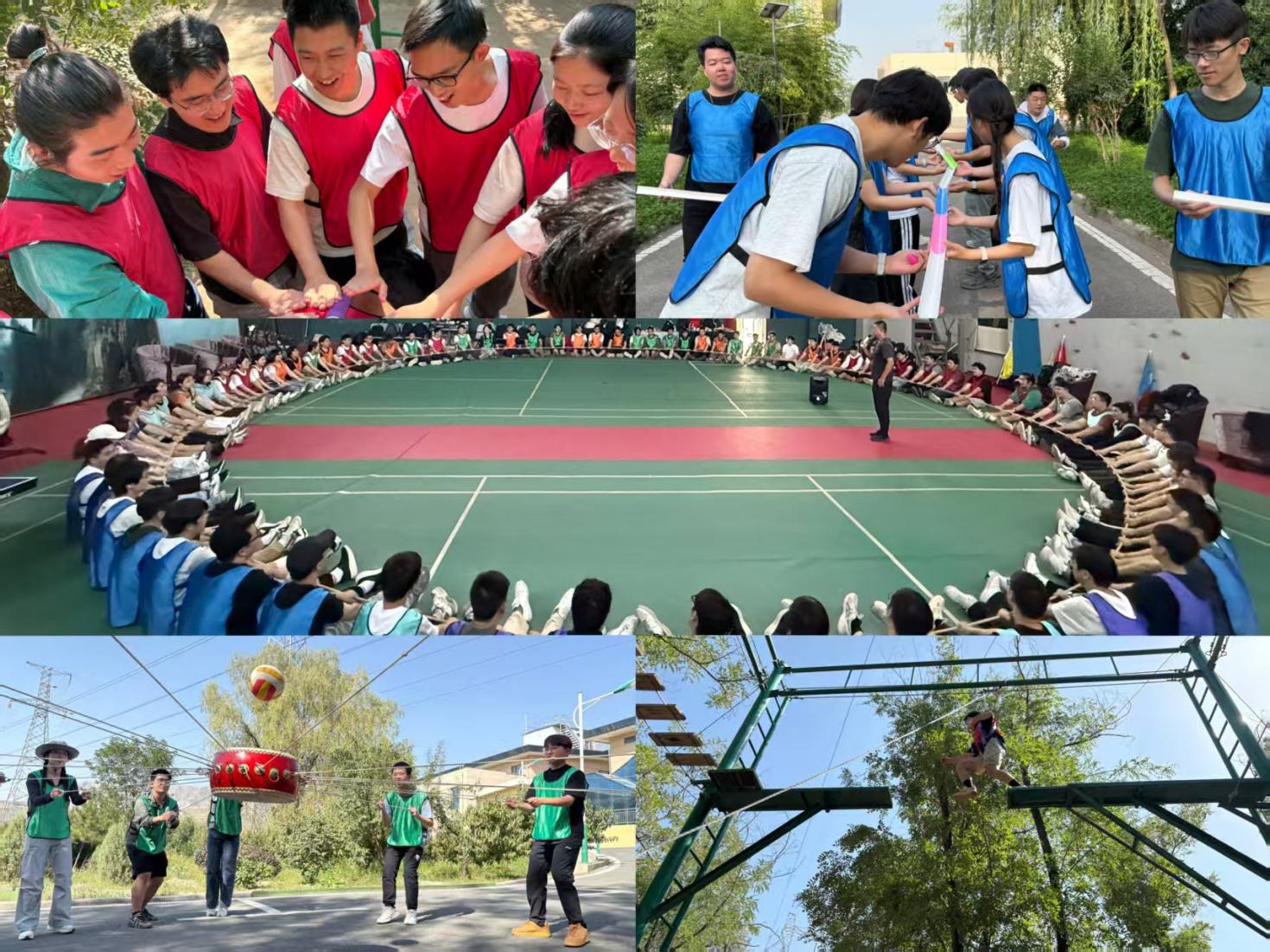 同學(xué)們組建了橙風(fēng)破浪隊、寧臥莊生產(chǎn)大隊、啟航星隊、猛虎隊、狼性干飯隊和鷹揚隊,在教練的帶領(lǐng)下,共同協(xié)作完成了高空斷橋挑戰(zhàn)、巴黎時裝秀、鼓上擊球等豐富有趣的培訓(xùn)項目。大家揮灑汗水,收獲感悟,齊心協(xié)力同進(jìn)步。
