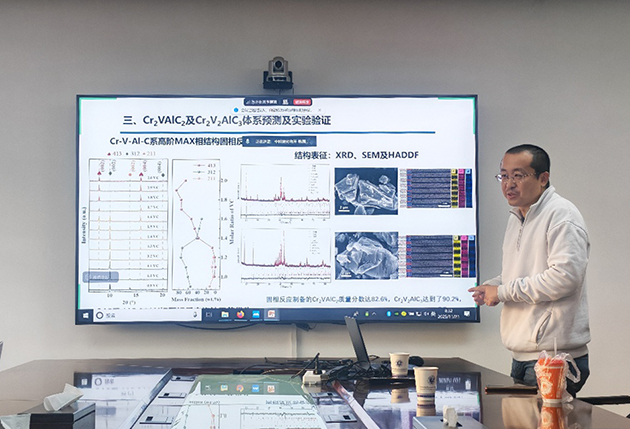 肖冰教授詳細介紹了神經(jīng)網(wǎng)絡與迭代算法的結合應用,闡述了四元MAX陶瓷合成過程中涉及的微觀反應動力學和能量轉化機制。通過算法優(yōu)化,為MAX陶瓷的制備與應用提供了全新的理論指導,為四元MAX陶瓷的合成工藝帶來了突破性的技術支持。