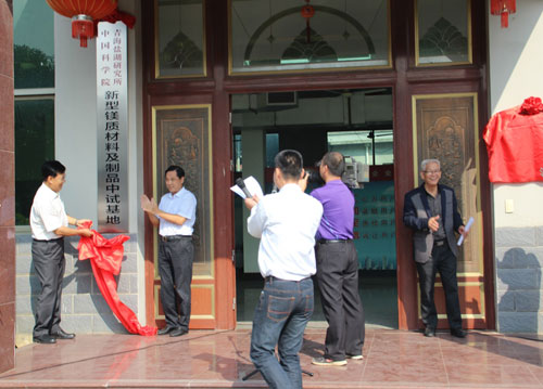 張金初、段東平、支洋波和肖學英代表雙方進行了“新型鎂質(zhì)膠凝材料工程技術聯(lián)合研究中心”和“新型鎂質(zhì)材料及制品中試基地”的揭牌。揭牌儀式結(jié)束后,來賓參觀了板材生產(chǎn)線和新型海工鎂水泥試驗場地。