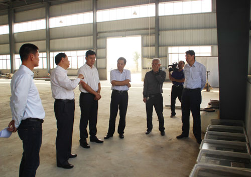參觀板材生產(chǎn)線和新型海工鎂水泥試驗場地
