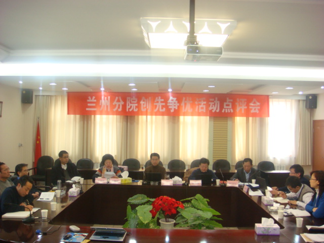 1月10日上午,蘭州分院黨組召開創(chuàng)先爭優(yōu)活動點評會,參加會議的有蘭州各單位黨委書記及創(chuàng)先爭優(yōu)活動辦公室的負責同志,分院黨組書記、創(chuàng)先爭優(yōu)活動領導小組組長謝銘主持會議并對各單位進行點評。會議首先學習了中央和院黨組關于開展點評工作的文件精神和要求,詳細聽取了各單位開展創(chuàng)先爭優(yōu)活動取得的成效、存在的問題和下一步工作思路,總結交流了創(chuàng)先爭優(yōu)活動的主要做法和取得的階段性成效,對下一步工作進行部署和安排。