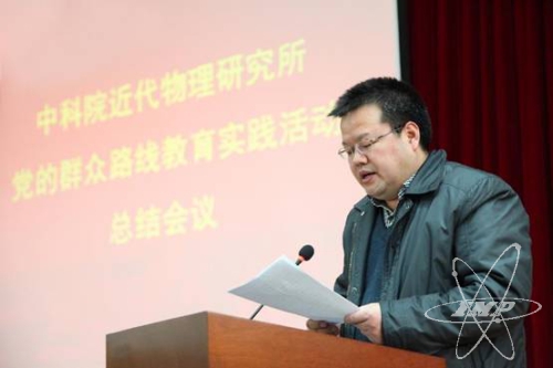 1月24日,近代物理所召開(kāi)黨的群眾路線(xiàn)教育實(shí)踐活動(dòng)整改落實(shí)通報(bào)暨總結(jié)會(huì)。所長(zhǎng)肖國(guó)青主持會(huì)議,黨委書(shū)記趙紅衛(wèi)做整改落實(shí)情況通報(bào)和總結(jié)報(bào)告,中科院黨的群眾路線(xiàn)教育實(shí)踐活動(dòng)第五督導(dǎo)組成員、蘭州分院副院長(zhǎng)楊青春出席會(huì)議作點(diǎn)評(píng)。